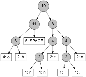 For our example message, the tree (including frequencies) looks like this:
