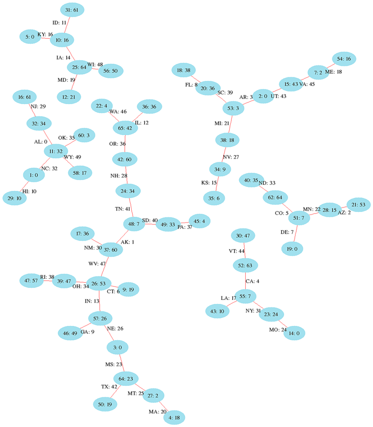 For example the is an edge for the state Alabama AL, with